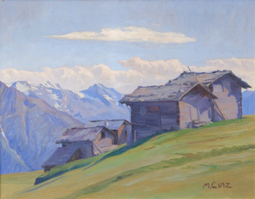 Gebirgslandschaft mit Alphütten (Obersaxen)