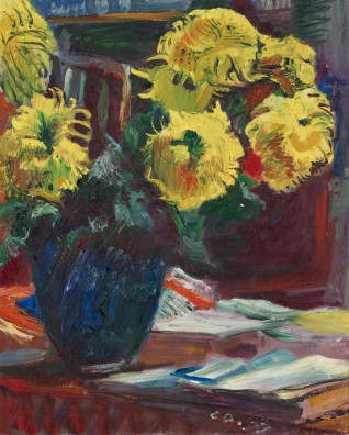 rückseitig bezeichnet, datiert und signiert P.O.129. Gelbe Chrisanthemen. [sic], 1933, C. Amiet.