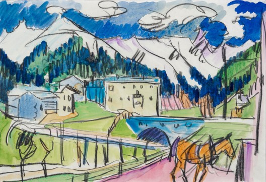 rückseitig bezeichnet und Nachlass–Stempel Davoser Landschaft NACHLASS E.L. KIRCHNER