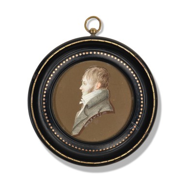Rundes Miniatur Portrait eines jungen Mannes im Profil, 1803