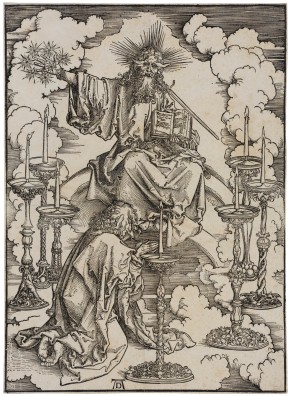 Johannes erblickt die sieben Leuchter. Tafel aus der Apokalypse, 1498