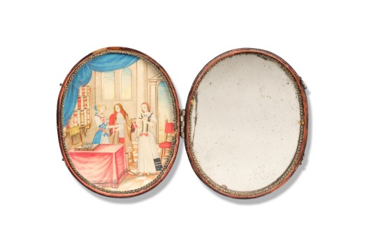 Ovale Miniatur mit Darstellung einer Szene in Barock-Intérieur